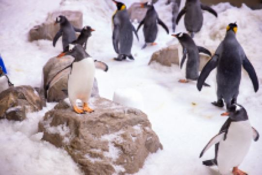 墨尔本水族馆坐落在被誉为“南半球的泰晤士河”的亚拉河畔,外观是以蓝白色相间为主的圆弧型的4层楼建筑,馆内分地上、地下两层,设有12个精彩主题探索区,给你带来难以忘怀的游玩经历。这里生活着咸水鳄、海马、海龟、乌贼、海龙、鲨鱼、海星、帝企鹅等丰富物种。在这里,不仅能近距离地观察到澳洲特有的海洋生物,亲手触摸各种各样的海洋贝类,还可以欣赏潜水员和鱼群一起同舞,乘坐透明的玻璃底船在水面上自由划行。△ 近距离观赏和喂养水母△ 深入幕后了解企鹅的生活习性△ 欣赏潜水员与鱼群共舞