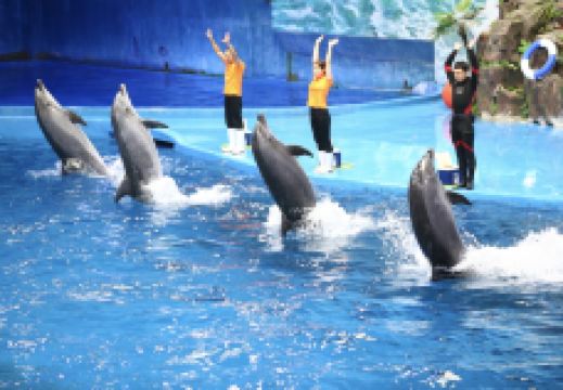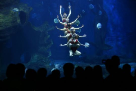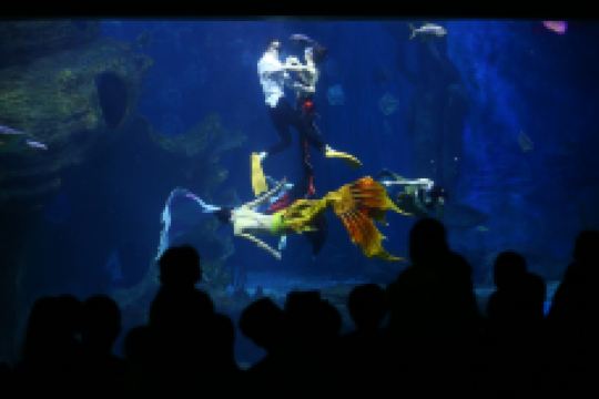观看了种类丰富的海洋生物之后,大家可千万要记得观看一场海洋萌宠们带来的精彩表演,在多彩贵州城极地海洋世界推出的海豚狂欢表演、海狮互动表演、人鲸共舞表演中,搞怪逗趣的毛皮海狮、憨态可掬的加州海狮、聪明伶俐的海豚和呆萌可爱的白鲸将用它们的独门绝技征服你挑剔的眼光。置身长达35米的海底隧道区里,你会被蓝色所包围。在众多大型的海洋生物中你会看到善于伪装的深海巨斑,飞翔飘逸的鳐鱼,带人毒刺的牛鼻鲼,色彩鲜艳、成群结对的圆燕、体型庞大的护士鲨等等,你还可以观赏到安徒生笔下的美人鱼在巨型的海螺宫里深情的等待着她的王子而演绎的曼妙的水下舞蹈、还有国内的水下表演者带来的异域风情的水下芭蕾表演、潜水员带来的人鲨共舞表演,都将会大大震撼你的眼球,让你体验到大海的神奇与梦幻、人与自然的和谐。