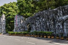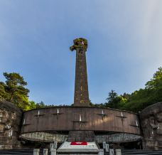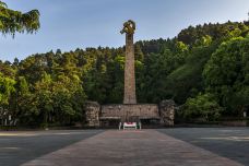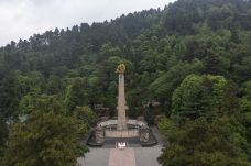 去遵义除了看会址,还要看红军山。遵义的红军烈士陵园修建在市内小龙山上,与当年红军鏖战的红花岗、老鸦山遥遥相望,集中了建国后在遵义各处找到的红军遗骨,故又称红军山。整个陵园庄严肃穆,正面是在纪念遵义会议五十周年时兴建的一座别具特色的纪念碑,碑上手书“红军烈士永垂不朽”八个金色大字。拾级而上,只见满山青松翠柏,一座巨大的红砂石墓茔掩映在万绿丛中,里面安葬着红三军团参谋长的骨灰。山上还有一座青石圆坟,坟前立着一块石碑,上书“红军坟”三个大字。里面葬着一位当年为遵义人民治病而惨遭反动派杀害的红军卫生员。