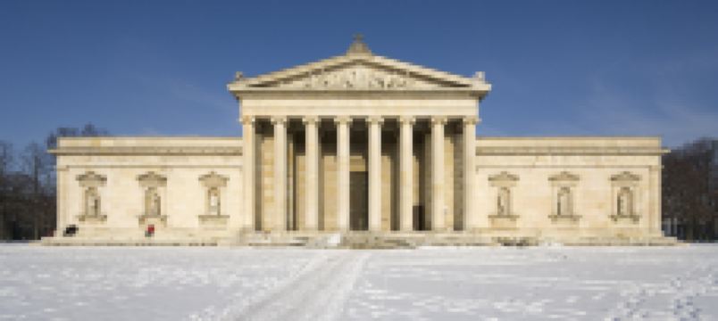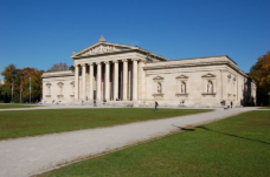 国王广场是一座新古典主义风格的广场,在二战中曾作为纳粹阅兵的广场,始建于19世纪初,位于它西部的希腊门楼是1862年仿造雅典山上的门楼建的。广场的南北两侧是几座罗马神庙式的建筑,如今都是博物馆,包括希腊博物馆、文物博物馆和冷巴赫艺术馆。希腊博物馆里收藏了很多古希腊和古罗马的雕塑。作品的时间在公元前6世纪到公元4世纪。文物博物馆里的收藏主要是小型的古希腊、古罗马艺术品,如花瓶、首饰、陶瓷和武器等等。冷巴赫艺术馆在希腊门楼的北边,过去是名画家冷巴赫的私人别墅。1929年以后这里专门收藏德国著名的画家流派“蓝骑士”(Der Blaue Reiter)的作品,如康定斯基(Wassily Kandinsky)、马克(Franz Marc)、穆特(Gabriele Münter)等人都有许多绘画作品留在这个博物馆里。夏天,广场上会举行露天演唱会,有时也放映电影。