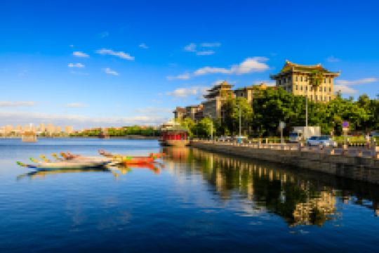 学村为陈嘉庚先生倾资创建,有名景点有嘉庚建筑、龙舟池、嘉庚故居、陈嘉庚先生生平事迹陈列馆、嘉庚公园、鳌园等。无论是高大壮观的校舍堂馆,还是小巧典雅的亭台廊榭,无一不是琉璃盖顶、龙脊凤檐、雕梁画栋,而细细看去,却又各具匠心,无一雷同。