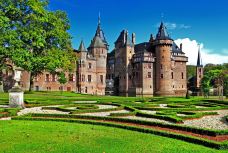 德哈尔古堡在乌特勒支郊外,建于十八世纪的德哈尔堡,于十九世纪改建成现在的新哥德式建筑。目前是世界富豪罗斯查尔家庭所拥有。除了家族夏季避署和冬季自用和宅邸以外,其它豪华的内装及盛开着蔷薇的庭园都对外开放。此地也是荷兰人拍摄结婚纪念照片的名胜地点。以红白镶边的中世纪古堡为背景,拍下新娘的幸福笑容。古堡所在地的哈尔戴连镇上,房屋也都一律是红白相同的颜色,被称为“红色镇”。