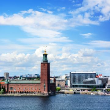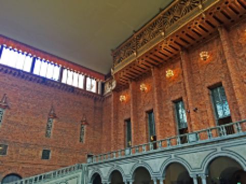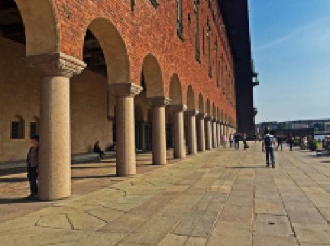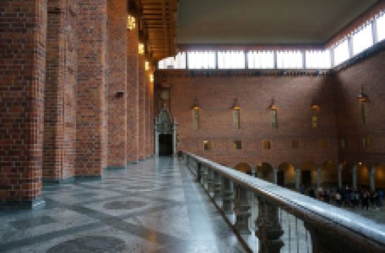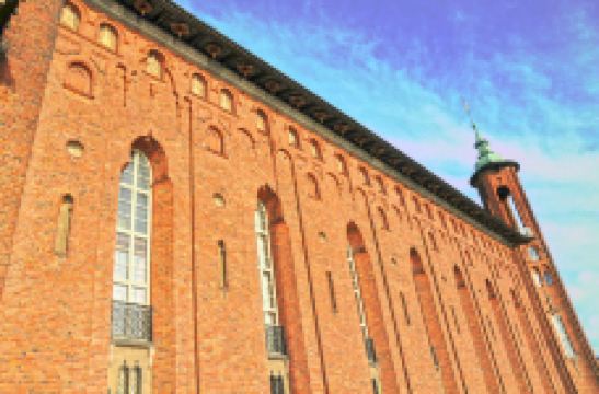 斯德哥尔摩市政厅市中心位于梅拉伦湖畔,始建于1911年,是斯德哥尔摩的形象和代表,该市市政委员会的办公场所,也是诺贝尔奖的颁发后宴请庆祝的地方。