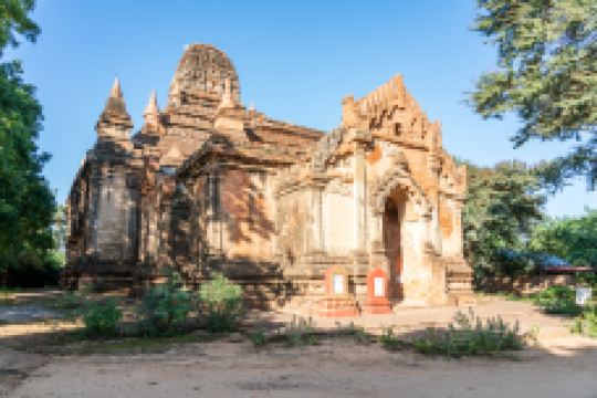 古彪基寺始建于1113年,是平原上为数不多内部壁画保存较好的塔寺之一。巨大的四棱锥造型的塔尖略带印度寺庙的风格,由巨大的宝殿和较小的前厅组成。外墙的装饰至今仍保存完好,内部的早期壁画也被很好的保护下来了。