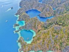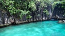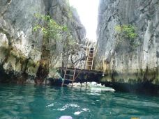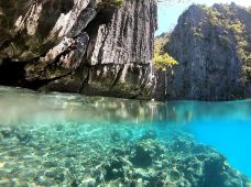 之所以叫双子泻湖,是因为被山隔开成两个湖,而这两座山之间只有一个2米长的岩洞相连。岩洞的顶端只高出海面20公分,想要从一池游到另一池,必须得从这个岩洞下面游过去,或从搭建的梯子爬过去。从船上可以直接下水游泳和浮潜。