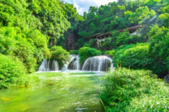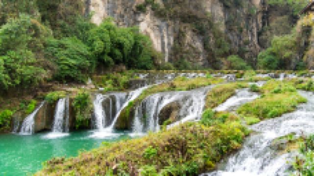 天河潭旅游度假区位于贵阳西南城郊,这里汇聚了溶洞和瀑布景观,堪称贵州山水的微缩。景区分为钙化滩瀑布观赏、香粑沟水文化、水洞游船和旱洞游览四大内容,游客还可坐上约400米长的高空滑索俯瞰景区风光。