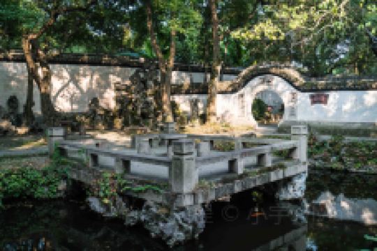 出牌坊区,接着参观院内的园林。荷花池四周有好几个赏荷的亭子,每个造型都不一样。水面上还有一座五曲桥,造型优美。走过五曲桥,便是后花园了。这里有许多太湖石围城的假山、小品,走出后花园,你会看到一株百年紫藤树,取“紫气东来”的含义,被视作大富大贵的象征。游人路过此处,必伸手摸一摸沾沾福气。