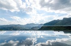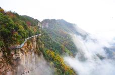 凌云渡玻璃栈道横卧于峭壁,沿绝壁而建,栈道全长260米,栈道设置2个观景平台,其中一个玻璃观景平台直接向外延展,置身其间,可依次体验漫步云端的梦幻仙境、凌空而立的惊险、瀑布擦肩而过的震撼。