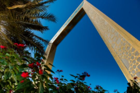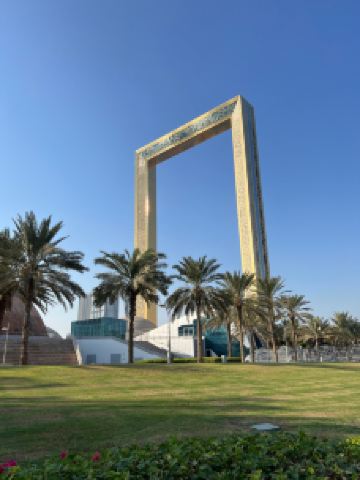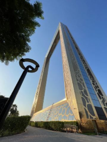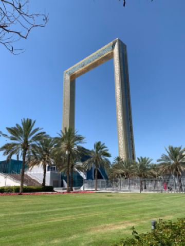 迪拜相框高达150米,宽达93米,它的外形酷似一个相框,两座塔楼由桥梁连接,往北可以眺望到迪拜的老城区,往南则可以欣赏现代风格都市景观的唯美风光,展现出迪拜这座城市的变化与成长。