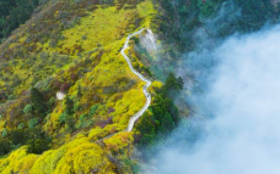 在鸳鸯池接待中心乘坐接驳车,抵达映雪湖畔的索道站,乘坐观景索道可抵达3200多米的日月坪。沿着山间步道前行,赏玩山顶风光的同时,游玩野牛道、红石堡、红石尖、白沙岗和阴阳界。其中阴阳界山岭的两侧具有完全不同的风光:一边是阳光明媚,一边则是云雾迷茫。此外,日月坪也是观赏西岭雪山云海的地点。