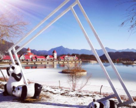 西岭雪山景区分前山和后山,前山为大飞水景区,是纯徒步观光景区,后山为滑雪场景区,冬季可以滑雪,其他季节则是观光和滑草。山上建有两段索道:交通索道(又称鸳鸯池索道)和观景索道。从景区大门进入后,乘坐交通索道,可直达半山腰的鸳鸯池接待中心,这是一片相对平缓的广场。夏季,在西岭雪山景区-映雪湖玩水嬉闹,湖东侧可以玩滑草。冬季,滑草区变成滑雪者的天堂。