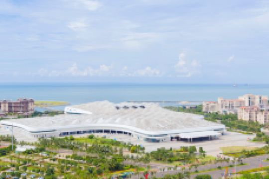 海南国际会议展览中心含三个无柱大展厅、4800平方米开幕式大厅及2.5万平方米室外展场,可搭2320个国际标准展位;会议中心配有2000座多功能厅、1800座剧场式会议厅、700座同声传译国际会议厅及27间中小型会议室。建筑屋面呈起伏波浪形,钢结构壳体与海边环境呼应,夜晚灯光秀美轮美奂。中心距海口火车站约10分钟、美兰机场约40分钟车程,周边酒店、游艇码头、商业配套齐全,可承办展览、会议、节庆、演出、宴会等万人规模活动,是海南对接“一带一路”与“泛珠9+2”合作的高端平台。