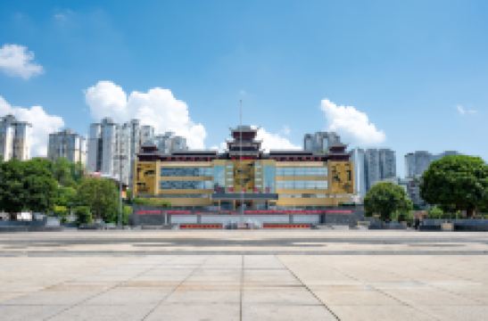 黔东南州博物馆的建筑形式颇有民族特色,中间的塔楼采用侗族鼓楼重檐形式,东西塔楼采用苗族吊脚楼形式,以外观来强调黔东南是“苗侗之乡”,整个博物馆由“黔东南概貌馆”、“少数民族风情馆”、“少数民族服饰馆”、“龙舟馆”和“现代民间工艺美术馆”等主题馆组成。三楼、四楼是主要的展览区域。由于黔东南的主要人口构成是苗族和侗族,所以博物馆里核心的是“少数民族风情馆”和“少数民族服饰馆”中的苗族和侗族展厅,这两个馆通过图、表、实物按历史、不同分支、习俗等作分类,陈列了很多反应苗、侗两族日常或难得一见的各种实物,对苗族和侗族的文化、传统、历史等都进行了很好的展现。整个博物馆的镇馆之宝在苗族展厅里,里面陈列了一件剑河的锡绣作品,用锡丝作为原料,用传统的绣法做成一件让人叹为观止的苗装,显示了生活在剑河一带的苗族人高超的刺绣水平。另外一个常规展出以黔东南不同的市县为展览单位,呈现当地特色风情,但是布展没有民族馆那么细致精美。如果你是四五个人结伴同行,则会有博物馆馆员领着你逛博物馆,经过他们的讲解,可以获得更加清晰的信息。当然了,参观完博物馆之后,馆员会带你去一楼参观工艺品店,这里面店家的手工艺品品相都不错,在这里还能找到黔东南本土书籍、明信片这类的印刷出版物,可以带回去作为礼物。