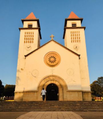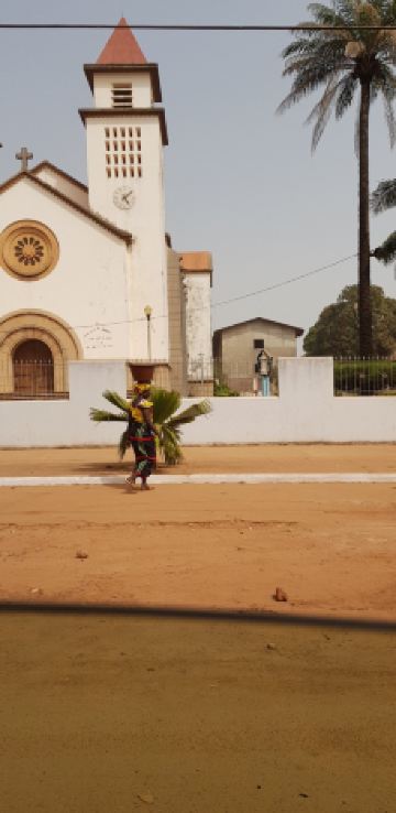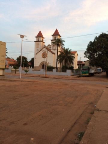 这个教堂靠近港口,有彩色玻璃窗,周围环绕有棕榈树,是当地人做礼拜的场所。