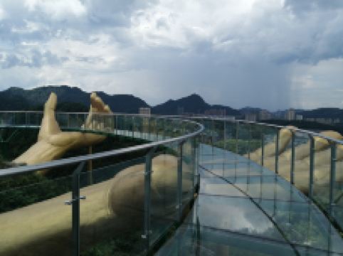 景区内还设有“大地之手观景台 、7D玻璃桥、空中玻璃滑道、高空滑索、树冠廊桥、鸟艺表演”等多个体验项目,增添了景区的体验性,不仅可以观赏到湖光山色,更能体验网红玩法。其中7D玻璃桥全长288米,高108米,采用7D碎屏、裸眼全息、群龙追踪等前沿互动科技,目前在全国玻璃桥中属于前沿技术。