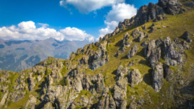 马牙山断崖崔嵬,石峰林立,远望犹如一排排巨大的马牙,仰视宛若万笏朝天,令人目眩神迷,无不惊叹大自然的鬼斧神工。马牙山这一奇异的地貌,是由成排的古冰川刨蚀留下的杰作。地质时期隆起的大山褶皱成分不同,岩层疏密软硬程度不同,风蚀月磨,“马牙奇观”便展现了。