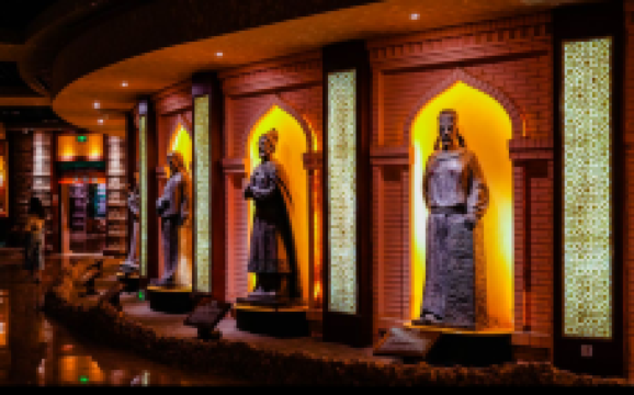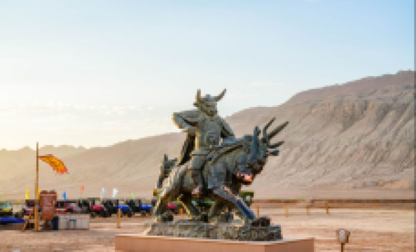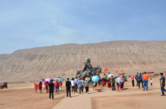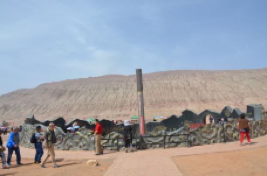火焰山景区位于吐鲁番市东侧连霍高速旁,距离市区车程约30公里,是一处以火红色的赤褐砂岩地貌为主的景区。这里历史上是高昌古国的所在地,而在传说中,这里是《西游记》唐僧师徒借芭蕉扇用以扇灭大火的火焰山所在地,是很多游客到吐鲁番旅游的好去处。火焰山景区分为地下、地上两个部分,游玩一圈下来大约需要1-2小时左右。一般游客来此都会先前往地下部分,这里是一座长廊式的展厅,展厅的棚顶被设置为天空样子的灯饰,很有特色。展厅内有与高昌古国相关的人物雕像和介绍等,都可以参观一下,了解高昌古国的历史。在展厅里还有纪念品商店和餐吧等,可以根据个人兴趣进入消费。参观完地下景区后即可前往地上部分,地上部分的景观便是火红的岩石和山崖地貌,十分壮观,非常适合拍照。地上的广场上有很多西游记主题的雕塑,还有名为金箍棒的巨大温度计。夏季的火焰山景区天气特别热,温度可高达58度,而且气候十分干燥,此时来此游玩一定是一次特别的体验。但是游玩时要注意多带饮用水,并且要准备遮阳帽、墨镜、头巾等防晒防尘装备,以免中暑。