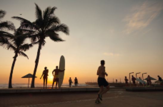 作为知名的“冲浪之城”,德班酷炫的水上运动让人直呼过瘾。在这里,冲浪者们可以乘着翻滚的浪花,与大海天空融为一体,体验翱翔于天地间的畅快。此处风浪强度适中,并且设有防鲨网,为冲浪者们提供了自在安全的冲浪环境。除此之外,在这片美丽的海滩周围有多个餐厅和咖啡馆,还有一个带有水上游乐设施的主题公园。