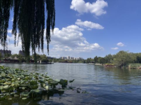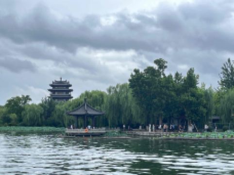 在此可坐景区内游船去湖中央的小岛,岛上有一座历下亭,亭子上方红底金字匾额是由乾隆皇帝手书的,亭中的墙上刻有蒲松龄为该亭作的《古历亭赋》全文。这里便是16景之一的“历下秋风”。