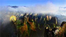 第二绝是鲸鱼闹海:位于八角寨景区,俯视峡谷,浮云飘渺,奇峰异石,时而露出头尾,恰似千万条鲸鱼在海中嬉戏;