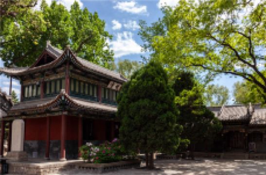 以圣母殿为中心,很容易找到“三绝”。彩绘泥塑人像就在圣母殿里,主像圣母端坐在木制神龛内,端庄华丽,其余42尊侍从分列两侧。这些塑像衣着艳丽,表情各异,其中有一尊花旦装扮的侍女,半面欢喜半面忧愁,让人看后心情也不禁五味杂陈。梅兰芳大师曾在这尊侍女前伫立良久,仔细品味她的动作和内心,并且大加赞赏。晋祠博物馆-周柏位于圣母殿北侧,植于西周,已有3000多年历史。难老泉亭位于圣母殿南侧,晋水的源头就从这里流出,长年不息。