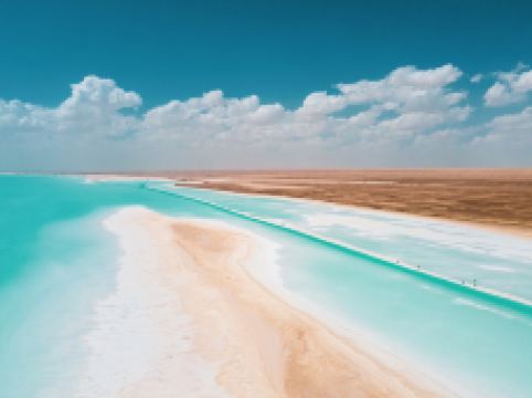 东台吉乃尔湖是柴达木盆地中的一颗明珠。湖水呈现出独特的蓝绿色,因其高盐度而形成了梦幻般的色彩,被誉为“天空之镜”。湖区周围地势开阔,景色壮丽,吸引了众多摄影爱好者和游客前来观赏。