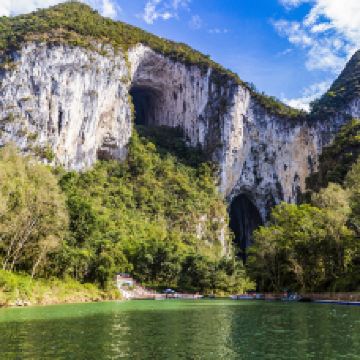 紫云格凸河风景名胜区地处贵州省西南部,包括大穿洞、天星洞、穿上洞、盲谷、小穿洞、苗厅、中洞苗寨等几部分,几乎囊括了喀斯特地貌的所有特征。既有格凸河穿梭蜿蜒在山峦和地下形成的神秘自然景观,同时也不乏类似中洞苗寨的人文风情。虽然早已被开发成景区,但是没有经过太多人工修饰,大部分还保持着原始状态。游客一般游览已开发的大穿洞景区和大河景区,大约需要4小时,而具有一定危险性,尚未完全开发的中洞苗寨和小穿洞,如果没有一定的户外装备和知识,以及必须的体力,还是不要轻易尝试。从景区大门进入后,可以选择乘坐电瓶车(包含在门票费用中)直达紫云格凸河风景名胜区游船码头,再坐游船游览天星洞和燕子洞。乘船游览一般1-2小时,由当地的苗寨村民担任船工,兼任导游。游船先到达大穿洞,大穿洞又称为燕子洞,源于这里是燕子繁衍生息的家园,这里也是南方屈指可数的几个燕子洞之一。游船在洞内只能行驶200米就需掉头,否则前面就是水流湍急的更深地下。天星洞在紫云格凸河风景名胜区的上游,因为洞壁曾经是当地苗族居民安放祖先悬棺的地方,因此俗称悬棺洞。靠近洞口处的岩石上,摆放着数十口棺木。这里曾允许上岸靠近,但是由于污染和破坏,现在只能在船上远远观看了。从天星桥景区-天星洞出来,在东岸摆渡码头登岸(摆渡小船每人一元),沿步道向大穿洞方向,很快就可以看见通往山上穿上洞方向的阶梯,共有2000级台阶,需要一定的体力和时间攀爬,往返需要1-2小时。山顶部的穿上洞有着巨大的内部空间,据说足够一家小型飞机从中飞过。走过穿洞,沿步道向前,一直到路尽头,就到了第一盲谷,后面还有被峭壁遮挡的第二和第三盲谷。站在围栏处向盲谷眺望一定要注意安全。盲谷底部据说有一条格凸河区域难度大的徒步路线,没有可靠的向导和专业的设备不可贸然前往。小穿洞从景色来说不是一个不得不看的地方,且道路难行,而苗厅虽然被宣传为紫云格凸河风景名胜区的重要景点,但是由于环境地限制,并不是一般旅游者有能力达到的地方,目前只有准备充分的科考人员和有经验的洞穴探险者才有机会一探魅力。中洞苗寨被称为亚洲大的穴居部落,大部分原来的中洞人家现在都已搬到新居,洞里有处新近修葺的吊脚楼,这是洞内的游客接待点。洞外不远处就是新建的中洞新村,这一部分景点尚未得到完善开放,道路不便、设施不完善,时间不够的情况下,大部分游客不会涉及,如果游客是一个有着专业的设备和户外经验的团队,不妨在有当地向导的情况下,尝试一下,游览完这一部分大概整个游览时间会延长到2-3天。