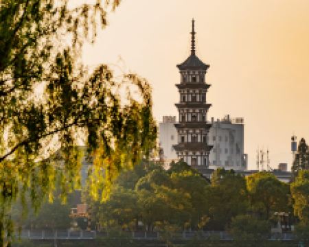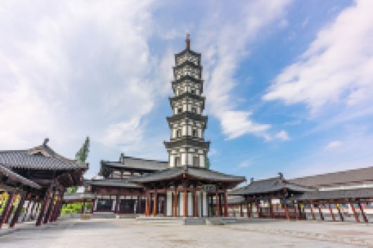 该塔始建于南朝梁天监年间,比杭州西湖的雷峰塔还早近500年,1952年因塔身将圮被拆。该塔历来是衢州人的乡愁记忆,经考古发掘,2013年当地对古塔塔基及遗址做了有效保护,并于2015年完成重建。现塔高45米,为七层六面式仿楼阁式砖塔,每层供奉佛像,共有三十三尊石雕佛像。