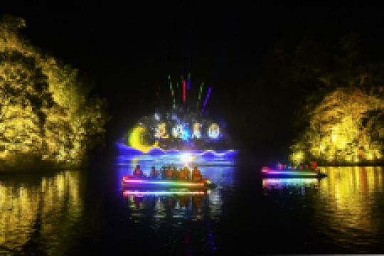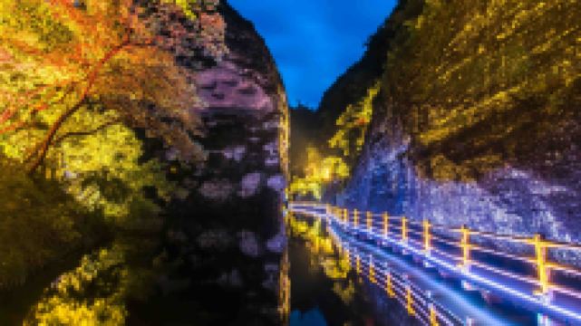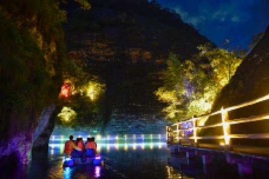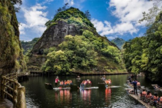 九龙潭由福建省旅游发展集团与泰宁政府共同投资,因其拥有无数条山泉溪涧汇聚而成的泉潭而得名。该景区位于泰宁世界自然遗产、世界地质公园核心区,景区方圆15km²内,水源充沛、生态优良,融合了泰宁“湖、溪、山、谷、岩、峰、沟”的精华,被誉为“水上丹霞的精品”、“丹霞山水微缩明珠”。景区体验感丰富,呈现“白加黑”全链条全时段拉长:日游:水上竹筏带游客体验“水天玻璃栈道”、“网红桥”、“喊泉”和世界罕见的“千米水上一线天”;夜游:作为全国少有、福建省较早“行进式”水上峡谷夜游项目,峡谷夜游带游客与世隔绝,融入自然,感受负氧离子极高的天然绿色氧吧和梦幻、幽静、空灵的别样意境,真正“夜游九龙潭,静享夜的美”。 “白天观山水,夜晚赏光影”,早已成为清新福建的又一张响亮名片。作为连续四年登上央视,连续两年呈现在“全国两会”开幕式前的直播景区,它2019年又被评为“华东十大优质漂流景区”。面对多项荣誉,景区坚持创新不止步,百尺竿头思更进,让游客即使身处同一个景区,也能体验到白与黑、动与静两种全然不同的世界。