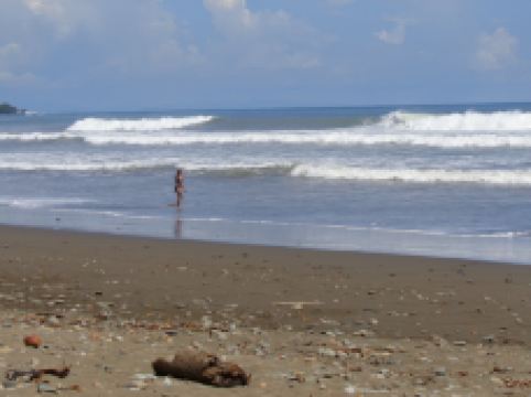 哥斯达黎加靠太平洋一岸的一片海滩,有太平洋海滩的棕色沙子和鹅卵石,适合冲浪。