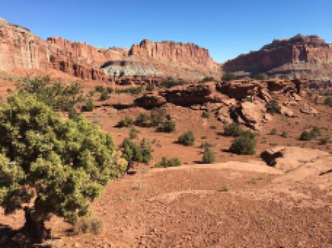 圆顶礁国家公园,位于美国犹他州,成立于1971年,是一座非常有名的国家公园。圆顶礁国家公园保护其色彩斑斓的地球的地质层以及独特的自然文化历史,园内有许多砂岩和巨石,有一些圆形巨石或悬崖具有浅白的颜色及半球形看似美国国会大厦的圆屋顶。公园内同时保有许多当年摩门教移民所建设的房屋。
