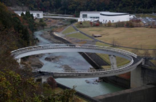 Hiyoshi Dam位于南丹市,大坝高六十多米,坝顶长四百多米,远远望去,水花飞溅,非常壮观,另外,大坝附近还有草坪和圆形的桥梁。