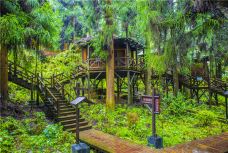 北纬30°景点主要突出原始生态特色,景观多样而奇特。这里有亚洲为数不多的大型观光索道,单边长800米,可凌空飞渡林海,尽情享受滑行于树尖的悸动。这里的负氧离子每立方厘米达到一万+,又被称之为空气中的维生素和长寿素。"硕大的古树,粗壮的藤蔓,厚厚的腐殖质层,倒伏的枯木朽树,四散漫布的苔藓(青苔)"等原始森林的五大特征尽显其中。