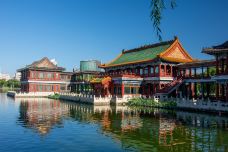 公园是依湖而建,中心的大湖面积很大,园内的建筑围绕在湖边。假山、仿古建筑和湖水一起构成了园林般的景色,可以坐在湖边放空自己,感觉非常惬意。公园的西北侧是一处袁崇焕庙,这里有袁庙广场、龙亭等建筑,是纪念民族英雄袁崇焕而建立的,可以前去观看其画像和康有为等人撰写的挽词手迹。园中的湖心岛上有飞龙阁、茗香亭等建筑,古色古香,其间建立的龙字石林景区十分不错。是用古代至今的各种字体(从甲骨文、金文、篆体直到近现代文字)写在石头上的“龙”字,可以参观一下。