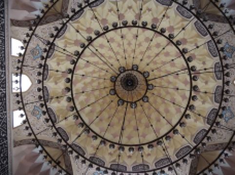 沙马基朱马清真寺是一座历史悠久的寺庙,里面有一个带有喷泉的庭院,天花板上的枝形吊灯和圆形拱顶看起来十分漂亮。