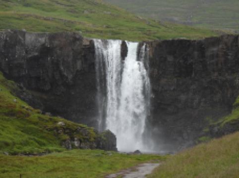 Gufufoss位于冰岛塞济斯菲厄泽,是当地非常有名的瀑布,紧邻九十三号公路,周围绿草如茵、气候宜人,是一个放松身心的好地方,另外,很多影片曾在此取景。
