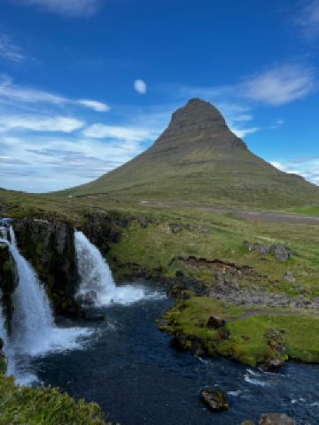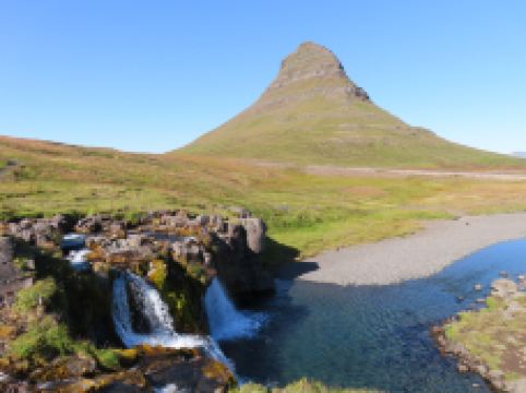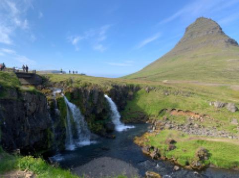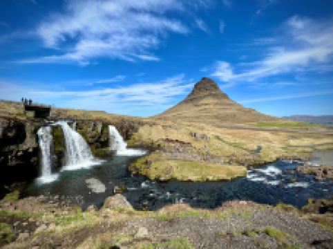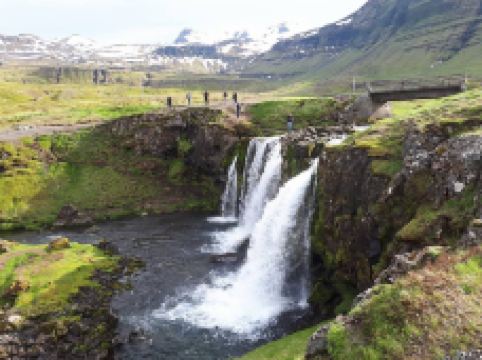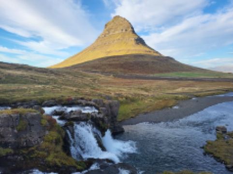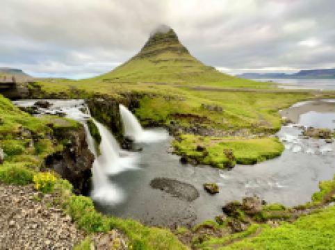 教会山瀑布位于冰岛西部斯奈山半岛的Grundarfjörður小镇附近,是冰岛具有标志性的瀑布之一。虽然规模不大,但因其与知名的教会山结合,成为摄影师和游客的必访之地。瀑布由三层阶梯式水流组成,夏季时水流清澈,冬季则部分结冰,形成晶莹剔透的冰挂,景色梦幻。理想的拍摄机位位于瀑布内侧,可同时捕捉到瀑布的流动与教会山的壮丽轮廓,尤其在日出、日落或北极光映照下,画面极具震撼力。这里交通便利,从雷克雅未克自驾约2小时可达,附近设有收费停车场。此外,该地区还是《权力的游戏》取景地之一,被称为“箭头山”,进一步提升了其知名度。无论是夏季的极昼阳光,还是冬季的极光之夜,这里都能带来独特的自然体验。
