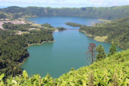 Vista do Rei Miradouro 是葡萄牙蓬塔戴尔加达市附近的一个观景点,位于圣米格尔岛的西部。这个观景平台能够俯瞰到 Sete Cidades 火山口湖的壮丽景色。Sete Cidades 由两个湖泊组成——绿色湖(Lagoa Verde)和蓝色湖(Lagoa Azul),它们被葱郁的山脉环绕,湖水的颜色随着阳光的变化而呈现出不同的色调,极具视觉冲击力,还可以欣赏到湖泊、山脉、森林与天空融为一体的全景。此外,Vista do Rei Miradouro 还为游客提供了一个轻松的徒步旅行入口,环绕 Sete Cidades 湖区的步道将大自然的魅力展现得淋漓尽致。