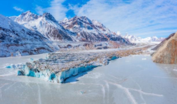 其中生成于岗日嘎布山东端长达12公里的雅隆冰川较为雄壮,它从海拔6000多米的主峰,一直延伸到海拔4000米左右的来古村边。