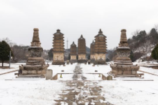 银山塔林面积不大,主要游玩区域就是五座古塔所在的广场处,这里可以为古塔摄影,古朴壮观的场面拍出的照片十分好看。塔林背靠银山,自古以来这座小山便有“银山铁壁”的说法,是指一到下雪时候山体洁白,而一侧的崖壁则陡峭的不会落雪。现在前来景区也可以爬小山游玩,观看陡峭的山壁,还有山间众多小的无名古塔,另外在山上拍摄五座古塔的俯瞰全景也十分不错。