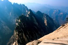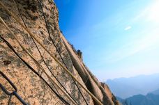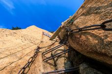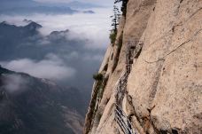 长空栈道位于华山南峰东侧山腰上,是华山派宗师——元代贺志真道长为远离尘世静修成仙,在悬崖绝壁上镶嵌石桩,铺上木板而成。走到栈道尽头,能够看到贺掌门修身的“贺祖洞”。