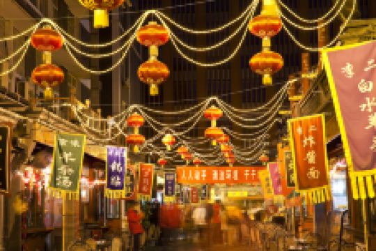 王府井位于故宫东侧,是指以王府井大街为中心的一片区域,这里汇集了多家大规模购物中心,是北京的老牌购物胜地。另外还有汇集各地美食的小吃街,历史悠久的王府井教堂等,是到北京购物逛街、品尝美食的热门去处。这里交通非常便利,地铁1号线、5号线都可以到达,附近公交线路也有极多。到达王府井,很多游客首要的事情便是逛商场。该区域有东方新天地、APM、银泰、北京百货大楼等多座大型的购物商场,汇集了国际、国内各大品牌的商店和众多饭店,购物、就餐都非常方便。还有瑞蚨祥、内联升、盛锡福等一众百年传统,让人感受到浓厚的民俗风情。品尝美食除了购物外,品尝美食也是王府井游玩的重点,在大纱帽胡同北侧有小吃街,再向北一点还有著名的东华门夜市。街上有老北京风味的炒肝、爆肚儿、豆腐脑、冰糖葫芦,有天津的狗不理包子、西北的羊杂汤等各地美食,甚至还有炸蝎子、昆虫等重口味食品,感兴趣的可以前去品尝。街上传统小吃经常有悠扬精彩的吆喝声,也是别具风情的一景。该区域内有王府井教堂、老舍故居等一批古老建筑,其中王府井教堂在北京比较有名,晚上亮灯时更是拍夜景的好地方。