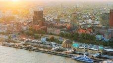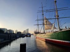 码头栈桥是汉堡的水上车站。始建于1910年。这个700米长的浮动码头有着绿色圆顶的古老港站,一艘艘轮渡由此出游。那圆顶本是青铜的,却因年久和风雨的琢蚀而泛出鲜亮的绿色来。 码头还有纪念品店,购买有意义的小物品来纪念这里,也有海鲜餐厅提供佳肴。从这里开始的港口观光能很好的欣赏仓库城,也能从自驾穿过克尔布兰德大桥,从桥上远眺港口。