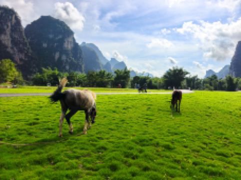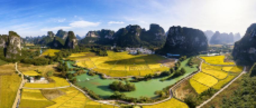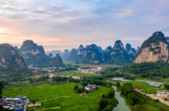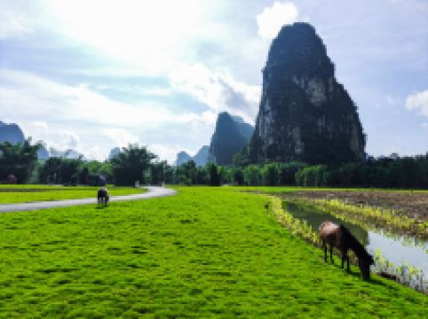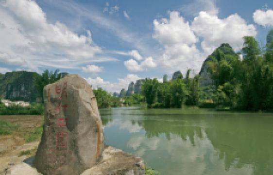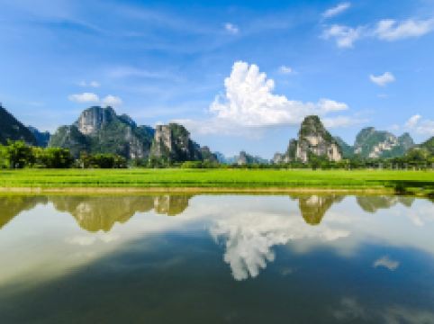 明仕田园位于崇左市大新县西侧,距离有名的德天跨国瀑布景区约一个小时车程,游客通常会将两个景区一并游览。明仕田园是独特的喀斯特地貌,山势俊秀,周围又有流水环绕,景色极为漂亮。