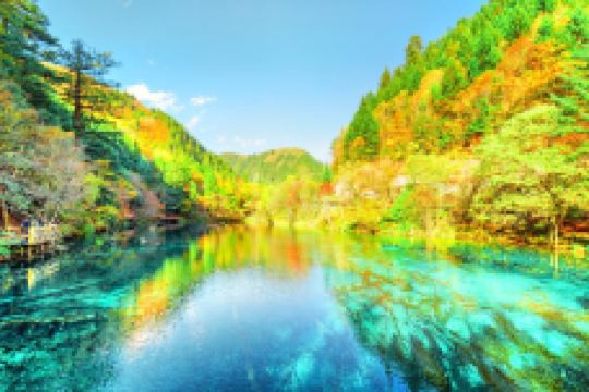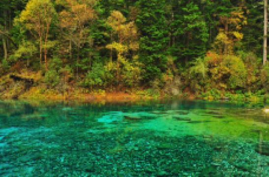 五彩池位于则查洼沟南段,是九寨沟尤为艳丽的池子,且四季不冻。其以秀美多彩纯净通透而闻名,因水中富含碳酸钙,所以湖水光影斑驳。有阳光的时候时是拍摄的好时机,在不同的位置和角度,会呈现出不同的色彩。