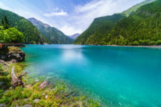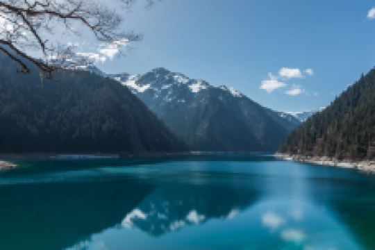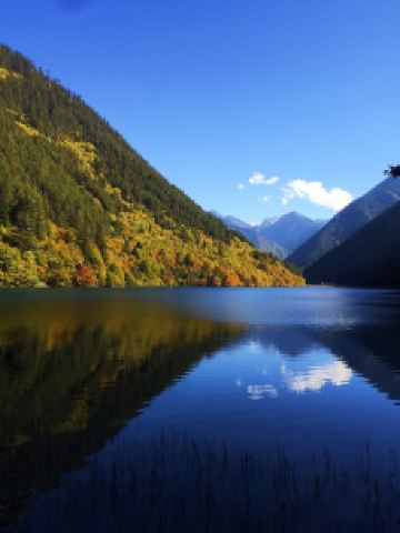 长海是九寨沟风景区长的一个海子,长达四公里多,呈墨蓝色,“S”形分布。海旁林木茂密,一眼望去,巍巍雪峰,还有典型的冰川景观,都沐浴在蓝天白云之中,壮观奇丽。长海海拔在3000米以上,是沟内海拔高的海。长海四周没有出水口,水源来自于高山融雪。奇怪的是,长海从不干涸,也不溢堤,因此藏民称之为“装不满,漏不干”的宝葫芦。长海呈墨蓝色,四周山峦叠翠,对面的群峰,一到初秋便披上了白色的盔甲,中间一座冰峰寒光逼人。隆冬时节,长海冰层厚达60厘米,载重汽车亦可在其上开行。长海也可算是九寨沟风景区所有海子的母亲,因为长海没有出水口,只能依靠蒸发和地下暗河把水排出,而这些地下河道正是其它海子水源的重要补给。