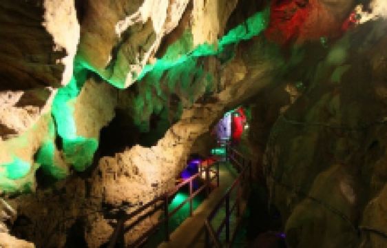 仙人洞位于大茅峰北侧,洞内景观奇特。现可进入的洞长有250多米,洞有三层,层层相通。从洞口进入150米长的下洞,洞中石笋、石钟乳、天然大理石随处可见,绿白相映,宛如翡翠。洞中流水潺潺,怪石嶙峋,形成溪、河、泉、桥、山、洞。中洞有四厅,自然形成,石笋、石柱、石花四周环绕,有的白似宝玉,有的红如胭脂,有的绿呈翠衣,千奇百怪,蔚为壮观。一厅里有一组钟乳石,远远看去就像“八仙过海”。二厅内的钟乳石又仿佛是悬挂着的盏盏龙宫灯。三厅别具一格,石钟乳构成绵延起伏的山脉,山上卧着长1.2米的“大海龟”,龟背上有一个酷似唐僧取经的造型,上方还有一只展翅飞舞的“凤凰”。四厅内细细观赏,“八百罗汉”栩栩如生。上洞烟笼雾锁,人行其间如腾云驾雾。