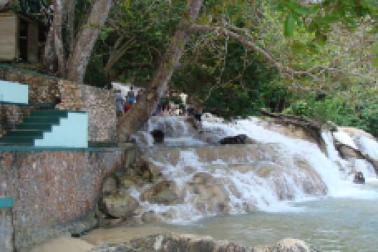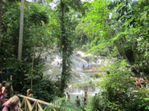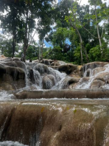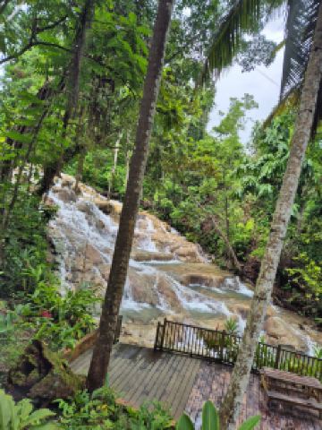 The World Famous Dunn's River Falls & Park是牙买加一处令人惊叹的自然奇观,它将瀑布、丛林与海洋独特地融合在一起,为你提供一段充满乐趣与探索的旅程。瀑布高约55米(180英尺),全长约183米(600英尺),由天然石灰岩沉积物形成的梯田状结构构成,水流汇入加勒比海。瀑布周围环绕着茂密的热带雨林,攀爬期间在苍翠植被的遮蔽下不必担心炙热的阳光。整个区域形成了一个完整的公园,包括一个可进行水上运动的海滩、一个工艺品市场、野餐区和一个美食广场,不仅是自然爱好者的天堂,也是家庭游客和冒险者的理想去处。