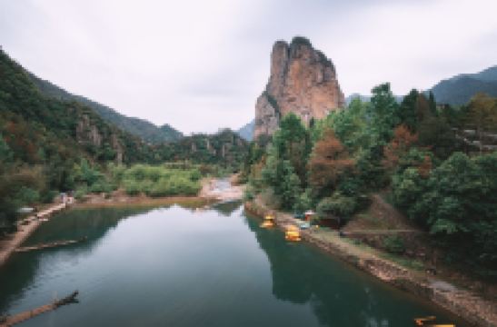 大若岩景区位于小楠溪中游,总面积85平方公里。景区特色:以飞瀑、奇峰、幽洞、秀水和神话传说见长。景区内瀑布众多,又千姿百态;奇峰怪石,妙趣横生。陶公洞被道家誉为“天下第十二福地”,洞穴幽深,口大内旷,南朝“山中宰相”陶弘景曾隐居此洞撰《真诰》一书;百丈瀑以宏大气势和落差高取胜;藤溪瀑潭天造地设,以美妙精巧著称,九漈瀑以漈多并富于节奏独秀一方;崖下库因藏而不露,“闻其声不见其形”,而使之引人入胜;十二峰则峰峰相挤,峥嵘挺拔,更为其他峰峦景观所不及。主要景点有:陶公洞、九漈石门台、百丈瀑、崖下库、十二峰、藤溪瀑布群、埭头古村、高徐村、醉溪、中心坑、小若岩群、芙蓉三崖、凤凰寨、小楠溪及沿岸滩林等。醉溪:位于水云村东北角。沿溪怪石奇岩,异峰幽洞,古松悬瀑,目不暇接。该景群有:麒麟岩、麒麟泉、三连瀑、万岁坑、三角瀑、蛟龙喷水等景点。小楠溪滩林:溪水大部分1米深左右,少数潭数米深,溪水澄澈,晶莹如玉。乘筏漂流于碧玉溪中,水碧天蓝,水天一色,天上白云,倒映水底,竹筏犹如在云中穿,天上飞。两岸滩林稠密,浓荫蔽日。岸上绿柳、翠竹、乌桕、丹枫、白茅、红花,构成一幅醉人的画图。