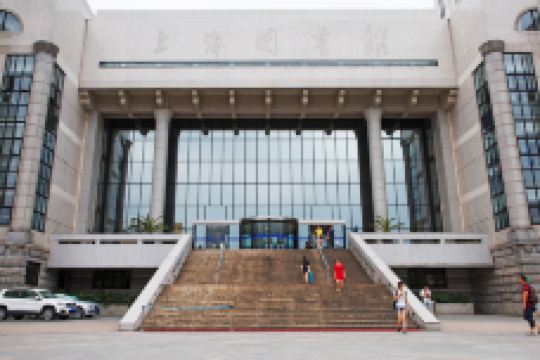 上海图书馆(淮海路馆)创建于1952年,旧址位于南京路黄陂路口,1996年在淮海中路建成了新馆。新馆占地3.1公顷,建筑面积8.3万平方米,书库4万平方米。主楼由两座高层和裙房组成,东西两楼呈多维台阶式块体型,象征文化积淀的坚实基础和人类探求知识的不断攀登。